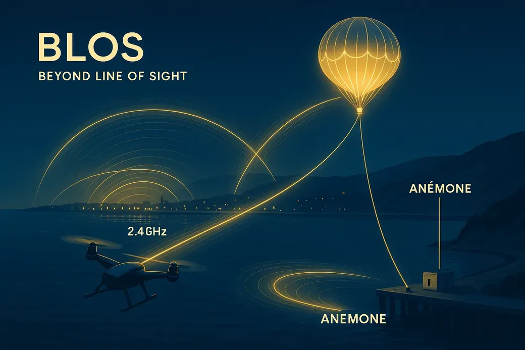 Nos ballons captifs fournissent une couverture 5G/VHF/LoRa instantanée, équipés d'oreilles acoustiques pour détecter les sons anormaux, de capteurs météorologiques verticaux et d'un relais AIS pour un suivi précis des navires, renforçant ainsi la sécurité en mer.